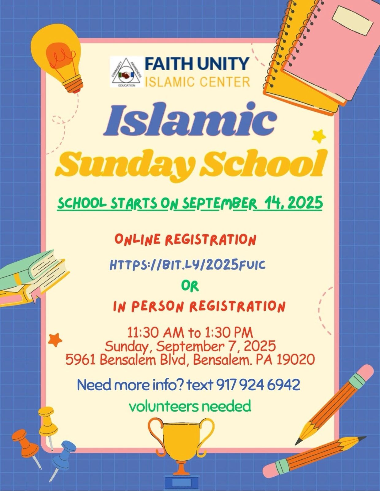Adults interested in learning Islam, Qur'an, and Arabic can contact trustees@faith-unity.org